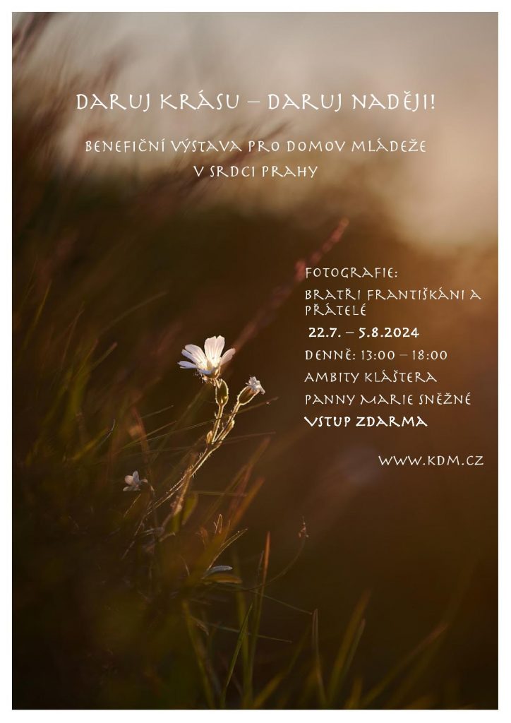 Benefiční výstava mých fotografií v Praze na Jungmannovo nám, v ambitech kláštera františkánů (viz fotografie z výstavy), ve dnech 22.7. – 5.8.2024. Téma výstavy: Daruj krásu, daruj naději: