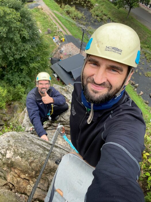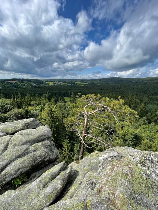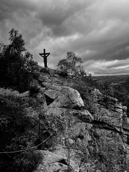 S Davidem jsme naplánovali tentokrát Vysočinu. Nabídl mi ukázat pohádková místa tohoto kraje, kam se hrozně rád vrací a mě se ta myšlenka tolik zalíbila. Jaro se k nám tentokrát nepřipojil. Vyrazili jsme k přátelům Davida a protože sami provozují horolezecké středisko v korunách stromů, půjčili nám potřebné vybavení k zdolání ferraty Ledová stěna. Navečer jsme popojeli kousek dál a s plnou polní vyrazili na nocleh do jeskyně, odkud je krásný výhled na vodní nádrž Vír. Je odsud dobře vidět Chudobínská borovice, která v r. 2020 vyhrála soutěž o Evropský strom roku. Třebaže počasí bylo mokré a vlhké, zahřáli jsme se u ohně a vzpomínaly na léta, kdy jsme ještě běžně spávali pod širákem. Druhý den jsme si zašli k Lukasově zpívající lípě, která je památečním stromem naší neslavné historie, kdy se katolíci a protestanti nesnášeli (viz přiložený popisek). My jsme naopak mohli s vděčností zazpívat žalm: „Jak je dobré a milé, když bratři bydlí pospolu“.